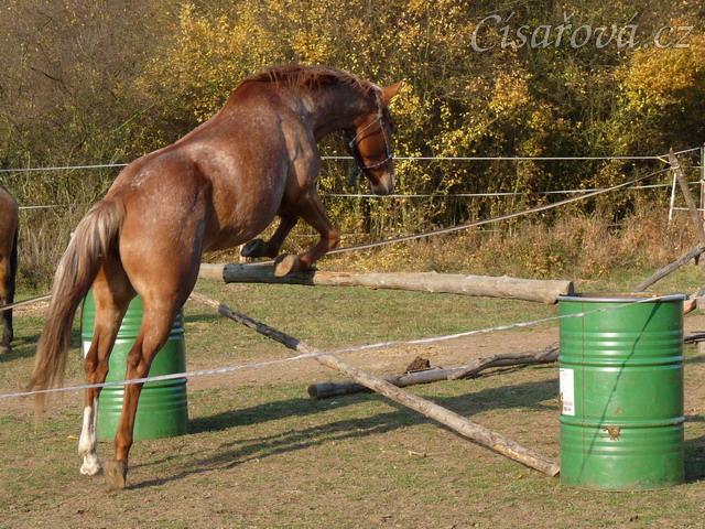 Im Docs Snow Queen, čtyřletá klisna Appaloosa, skákání ve volnosti