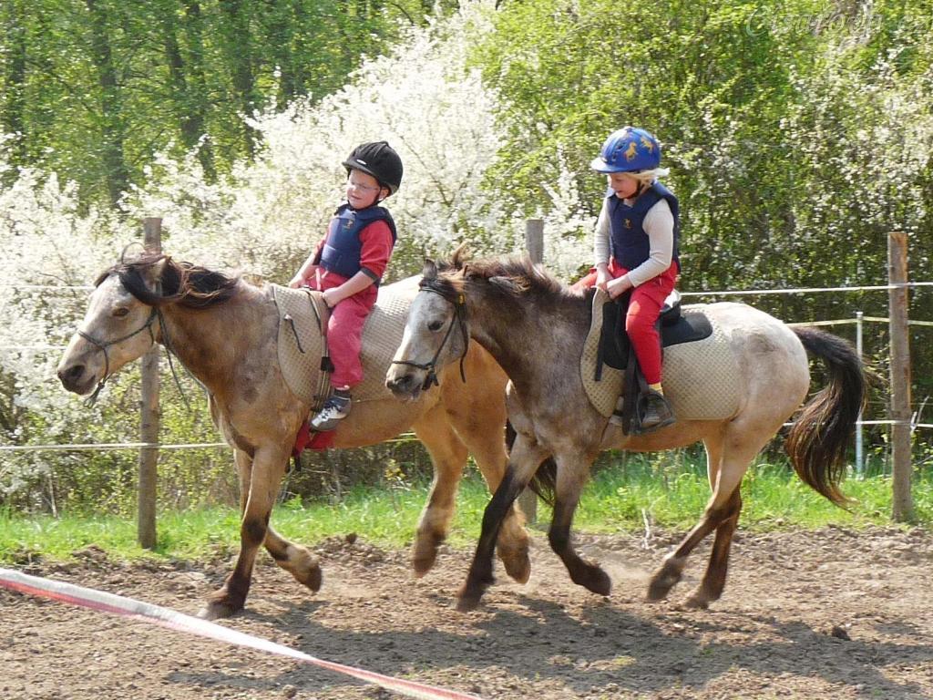 Greisy a Galen s dětmi při ježdění v kruhovce