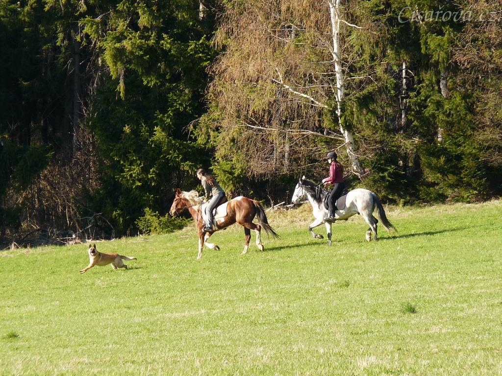 Naše pastviny v Čeleticích, Vikina a Divík testují povrch:-)
