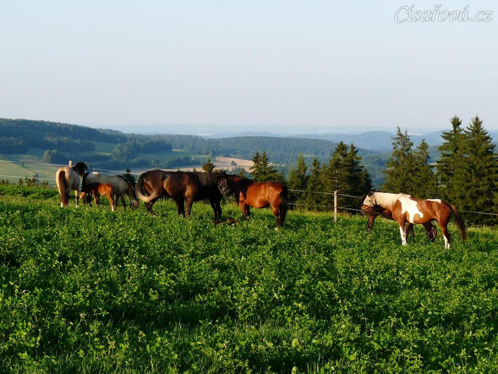 Stádo na pastvině s výhledem do dáli