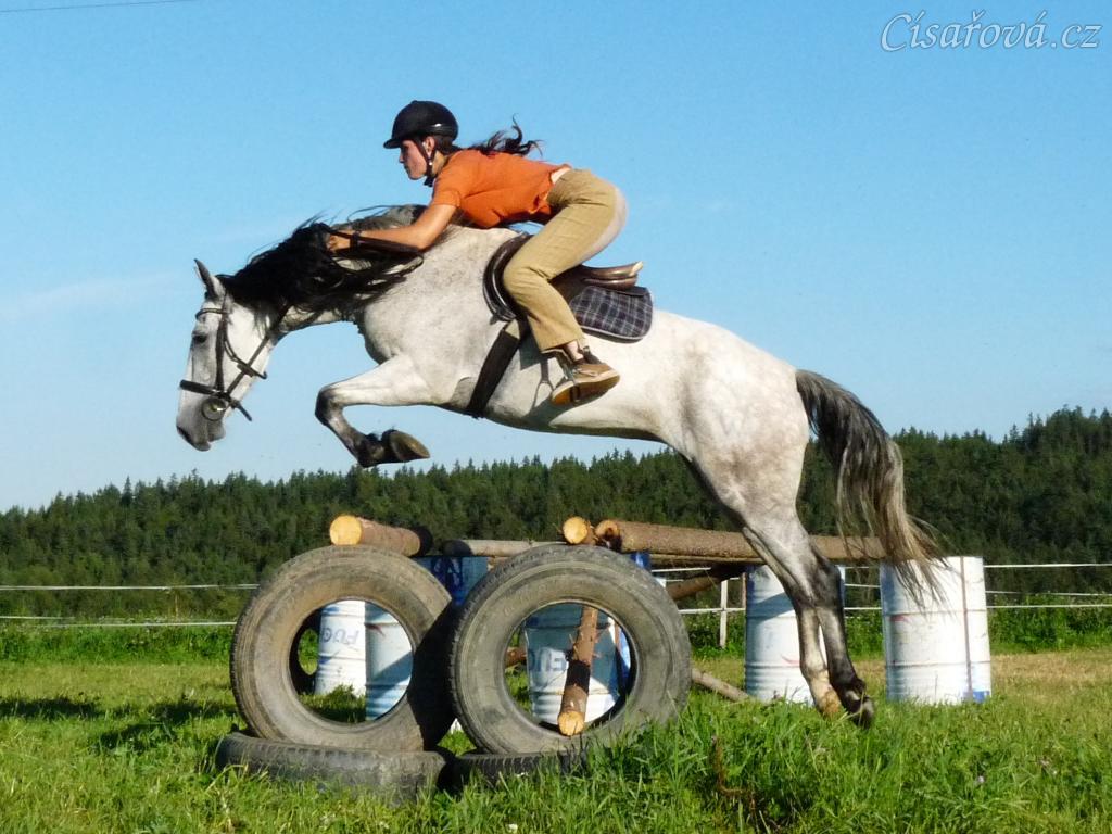 Divo při skokovém tréninku na jízdárně