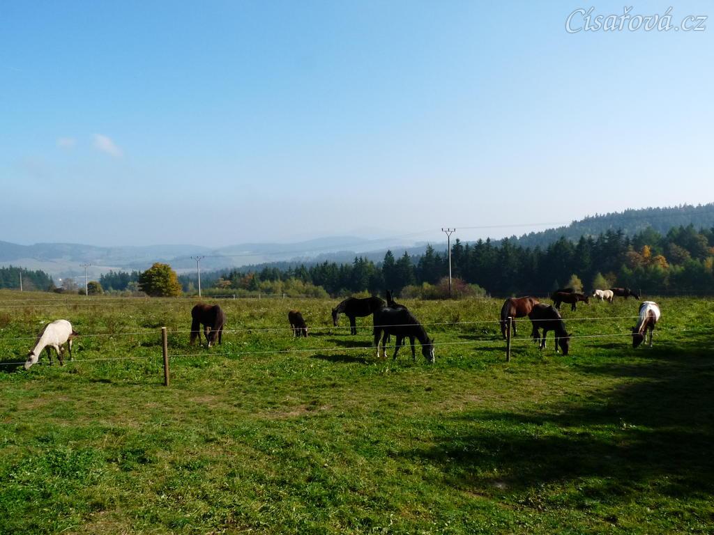 Ze zimního výběhu mají koně pěkný výhled do krajiny:-)