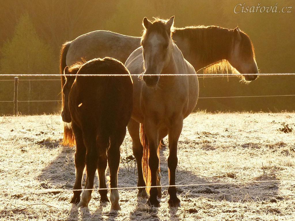 Odpočívající koně, brzké ráno na konci října