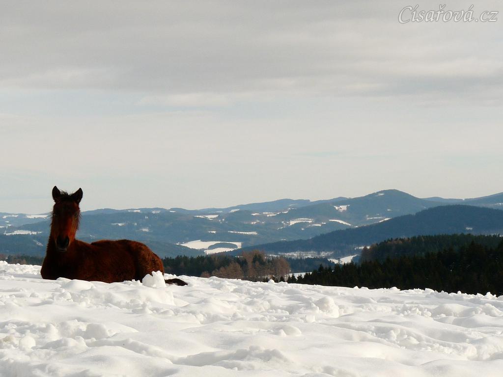 Ascara, půlroční hříbě, na sněhu se dobře spinká:-)