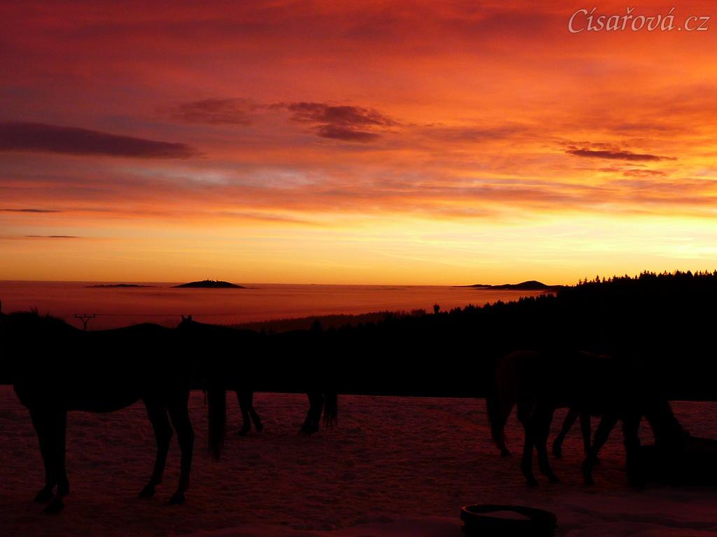 Východ slunce barví mlhu a nebe do neskutečných barev