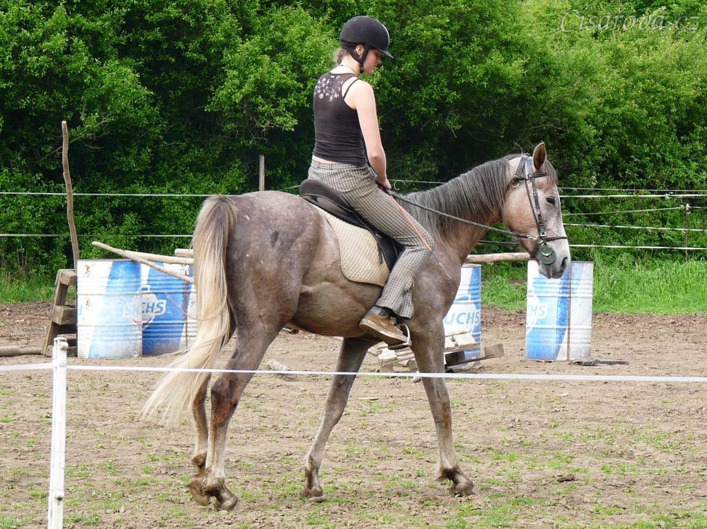 Dukát při práci na jízdárně - ohnutí na kruhu v kroku