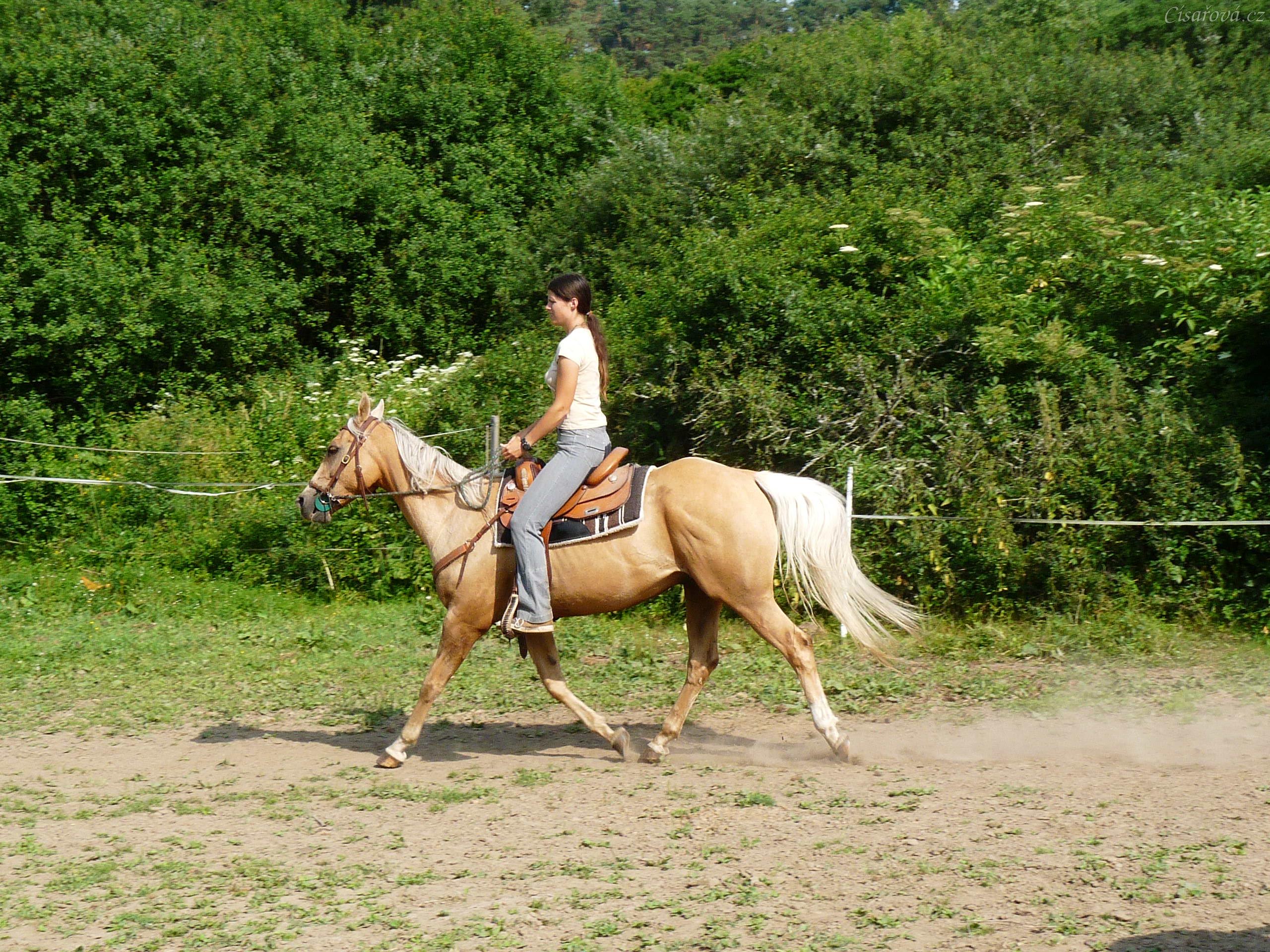 Jacs při ježdění na jízdárně - klus