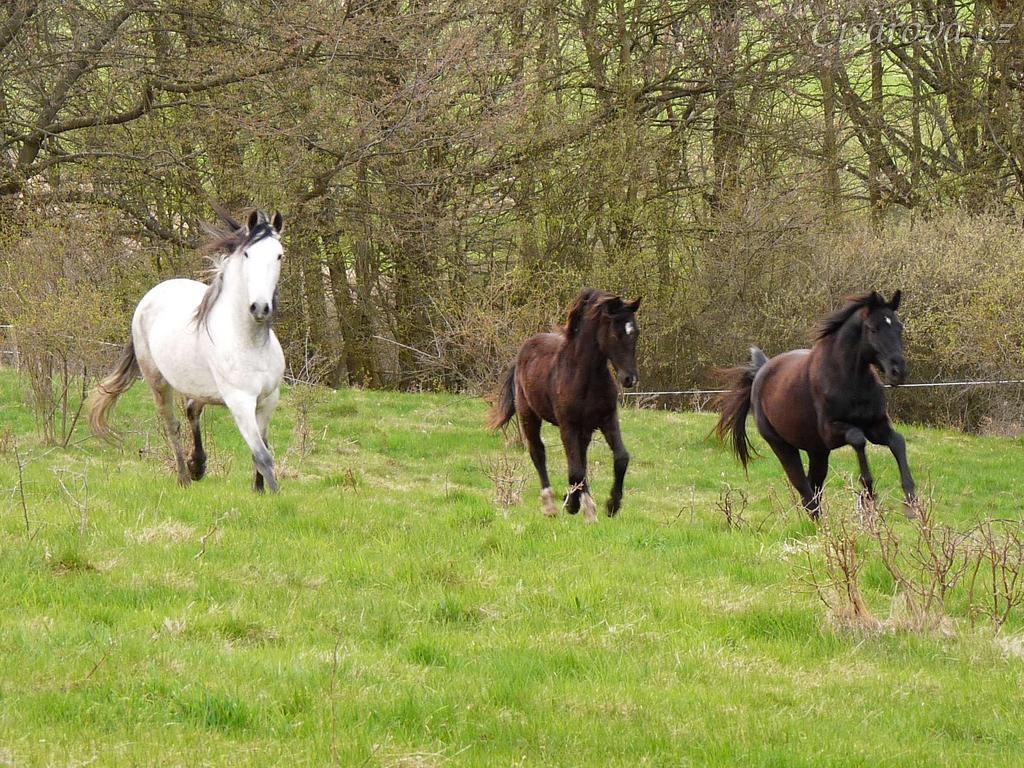 Duben 2010, stádo hřebců běhá po vypuštění na pastviny