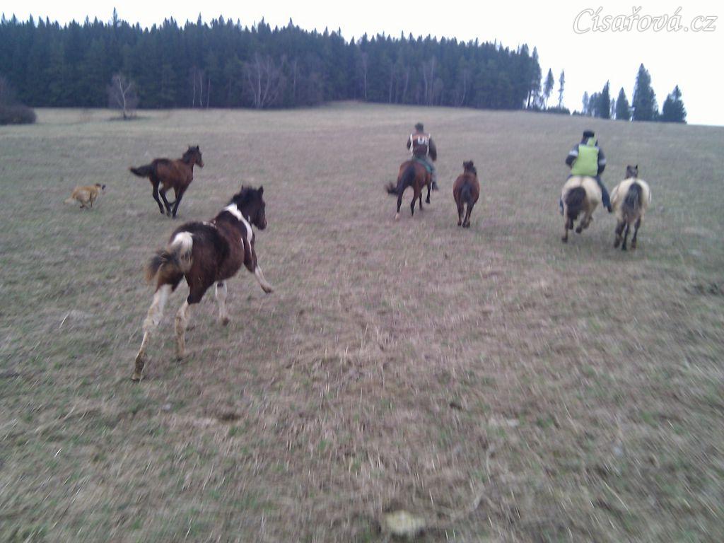 27.3.2011 - Roční hříbata s maminkami na výletě, o dovádění není nouze:-)
