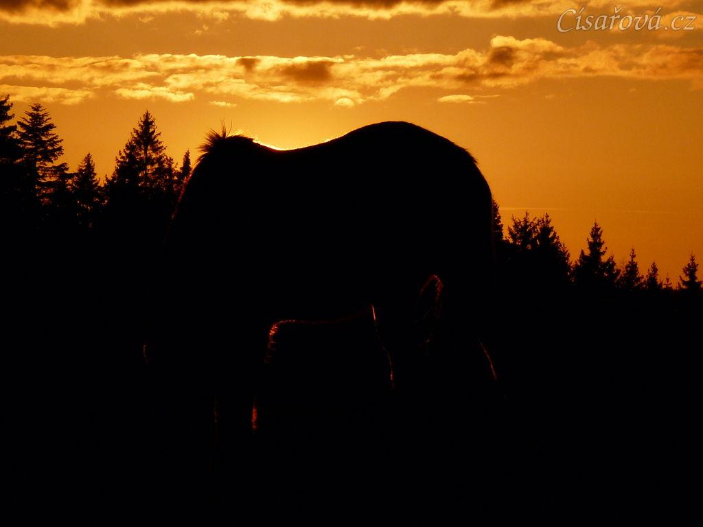 2.4.2011 - První vypuštění koní na pastvu, západ slunce