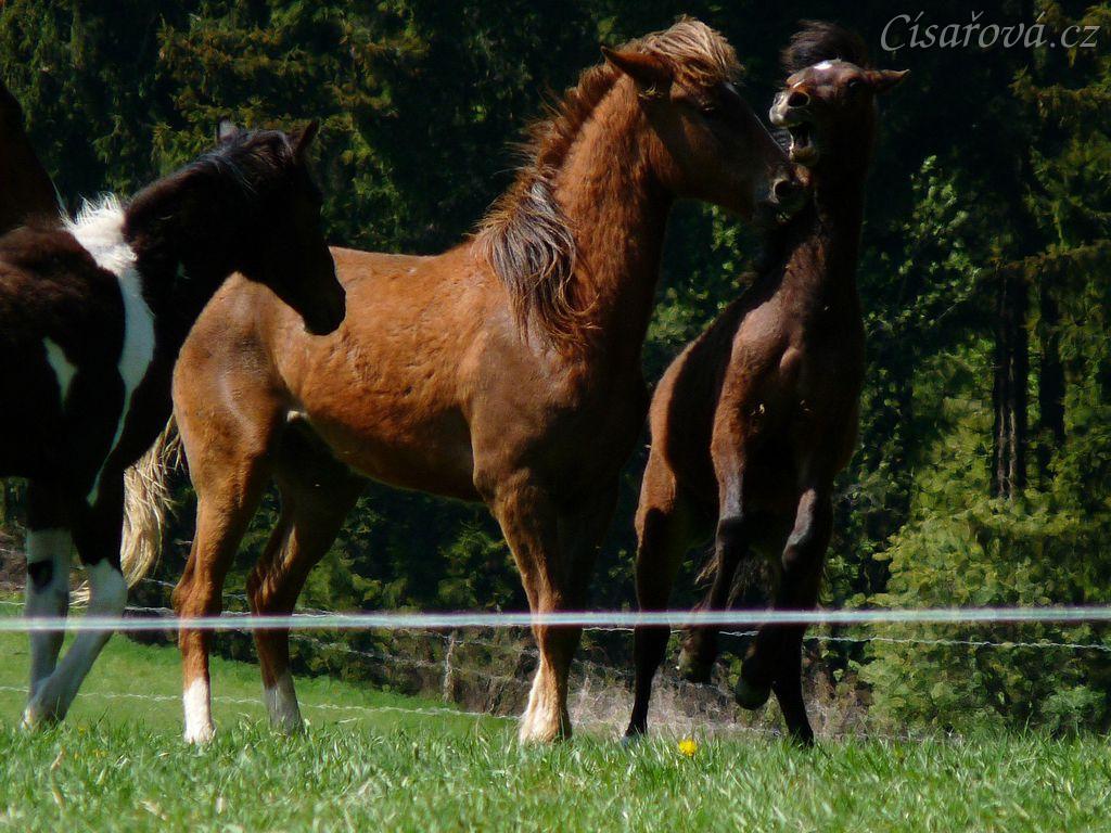 Mladí hřebci na pastvině