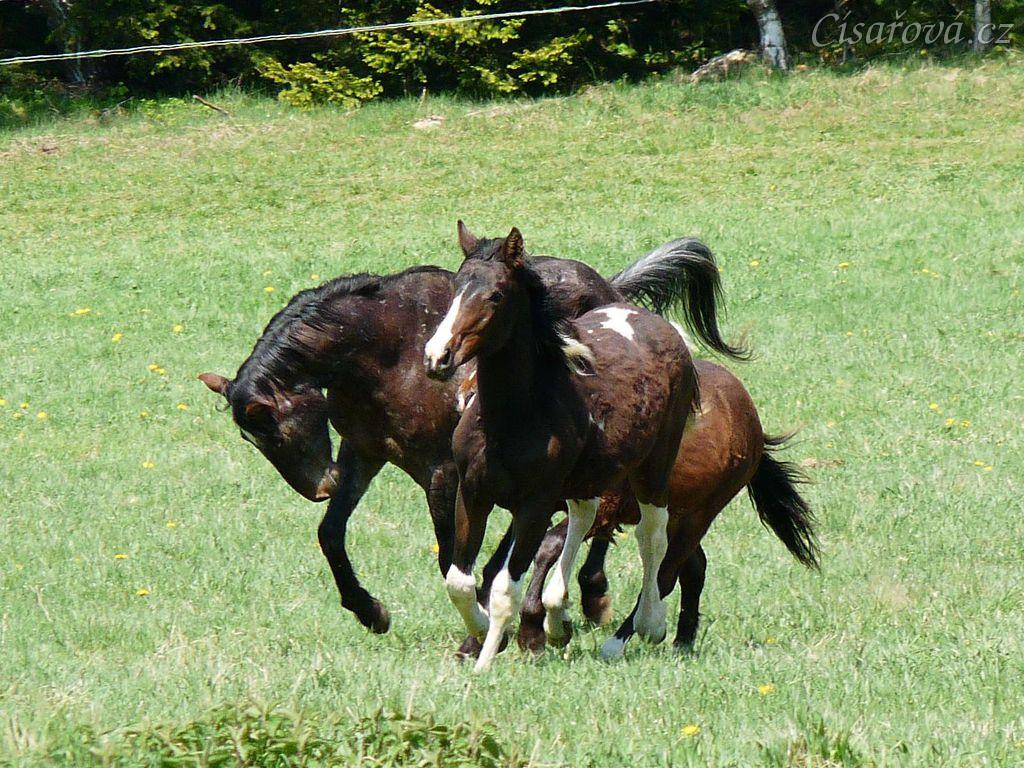Mladí hřebci na pastvině