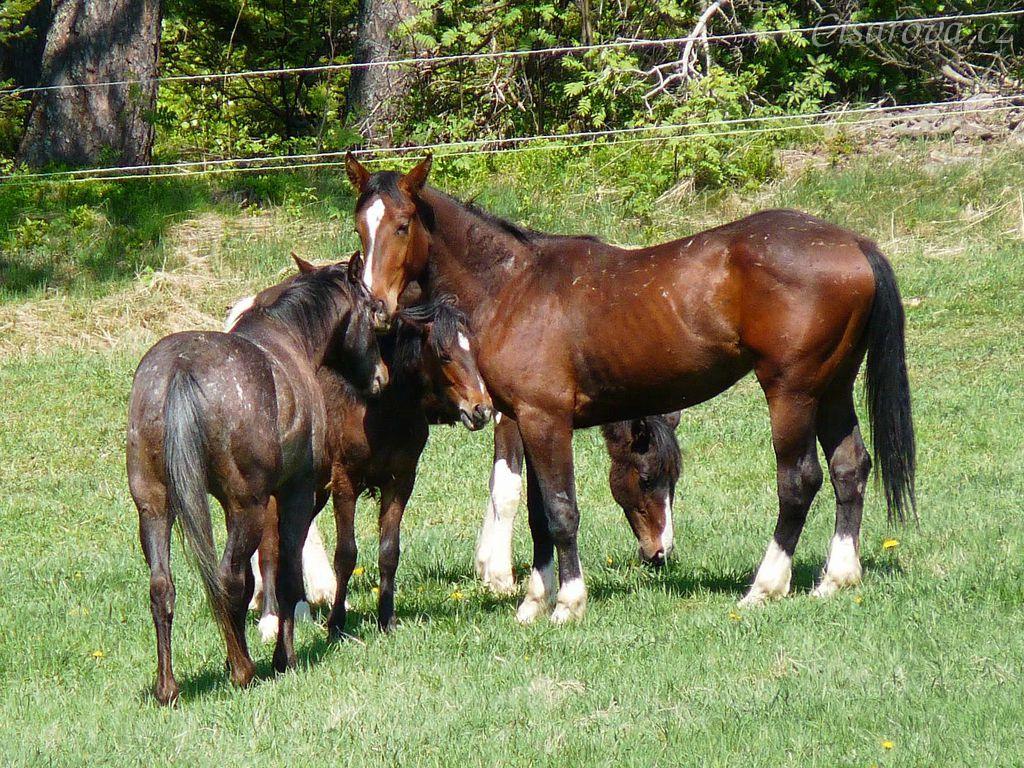 Mladí hřebci na pastvině