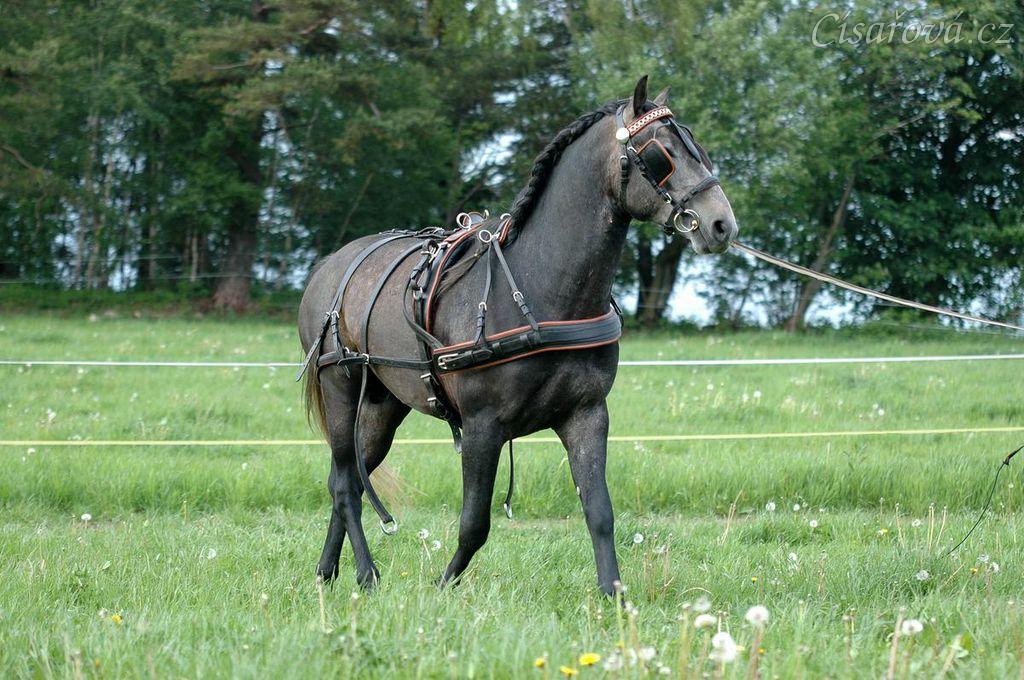 Rybíz se učí tahat - na lonži s postrojem. Foto Olga a Věra Procházková