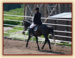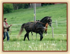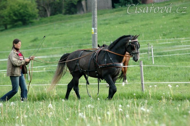 Rybíz se učí tahat - řízení opratěmi po jízdárně. Olga a Věra Procházková