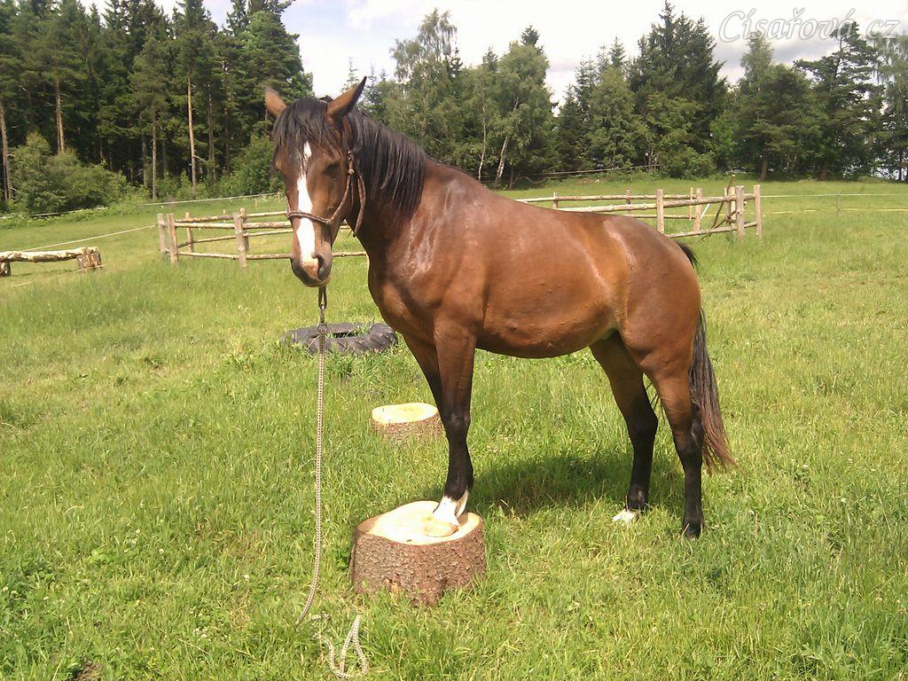 17.6.2011 - Tříletá klisna při práci ze země, poprvé stoupla na špalek...