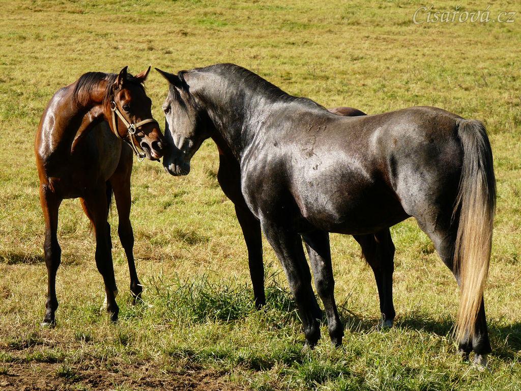 Čtyřletý lipický hřebec Rybíz se seznamuje s nově příchozími hřebečky