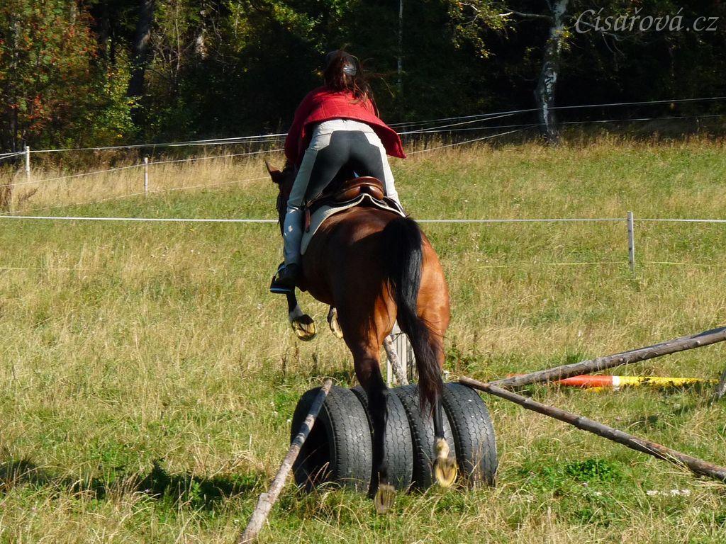 Bára při skokovém tréninku,nácvik úzkých skoků pro military, začátek října 2011