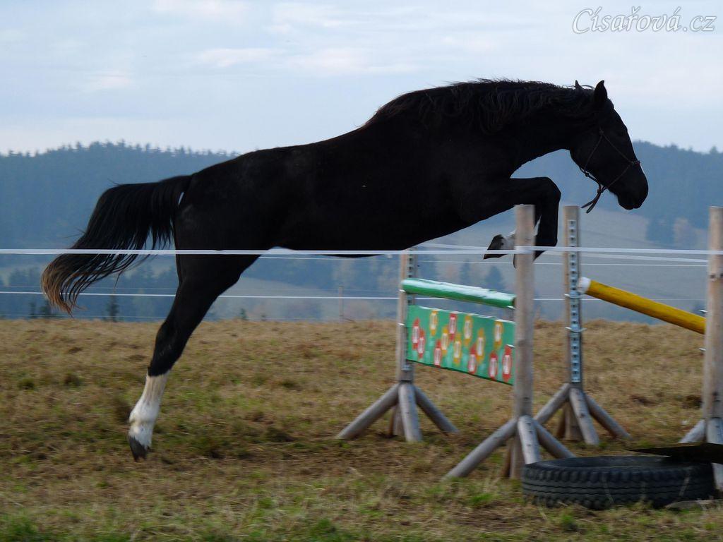 Dvouletá klisna Kroona, Irský sportovní kůň, poprvé skáče metrové skoky