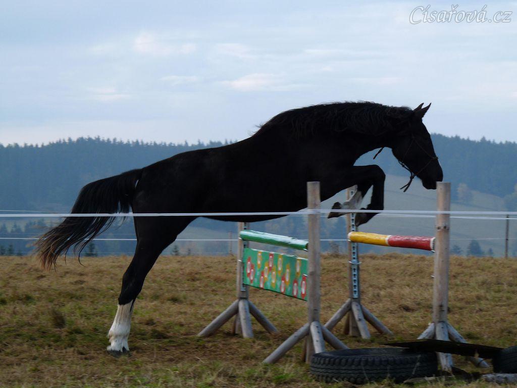 Dvouletá klisna Kroona, Irský sportovní kůň, poprvé skáče metrové skoky