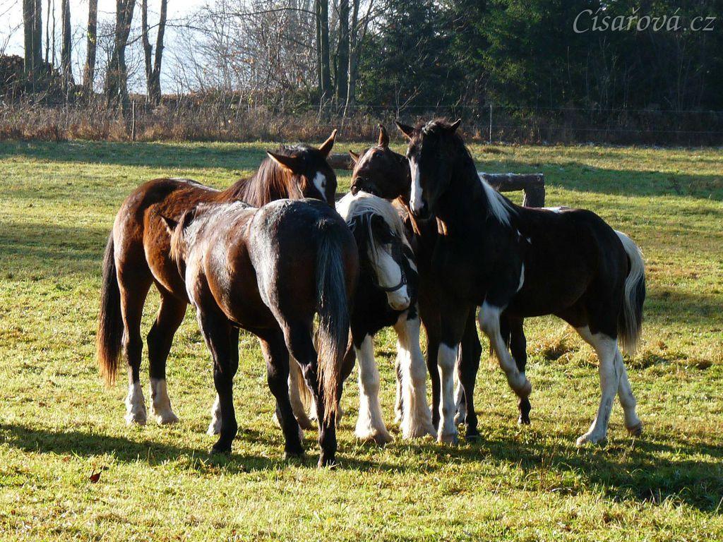 Nový člen stáda, dvouletý Irský Cob, v obležení