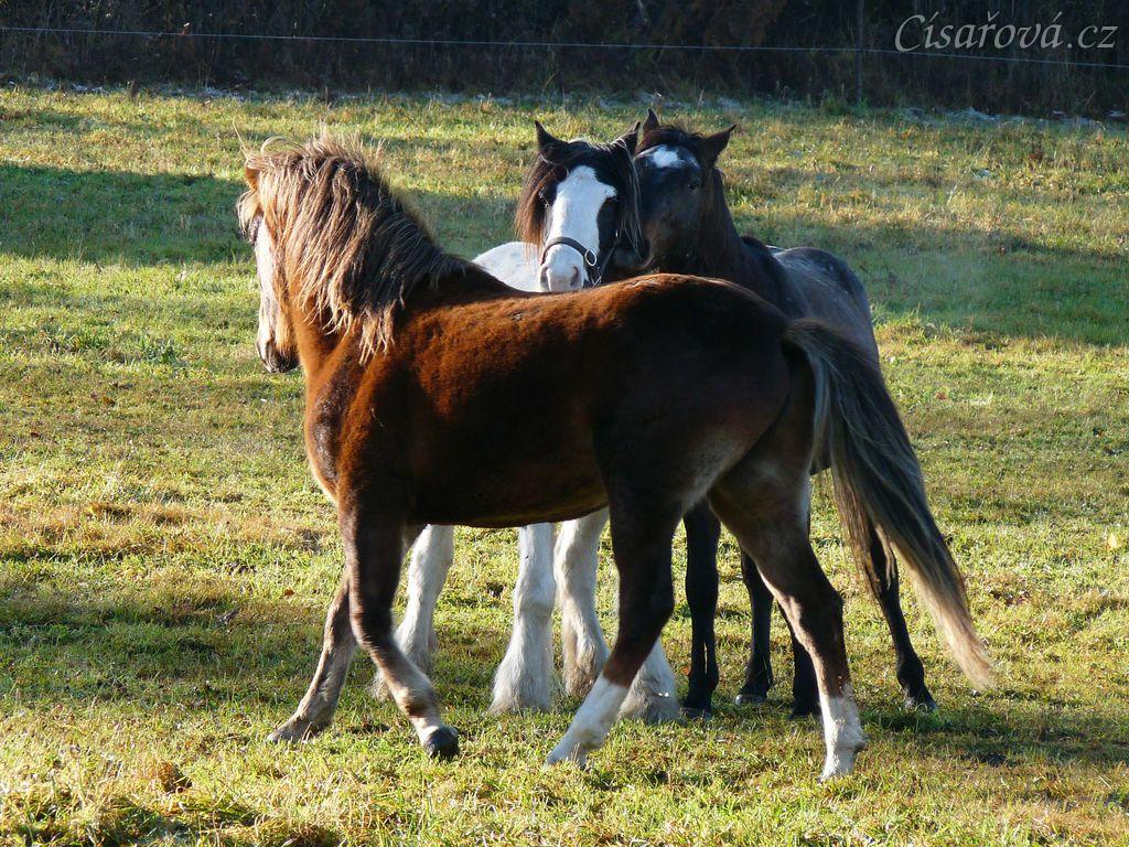 Nový člen stáda, dvouletý Irský Cob, v obležení
