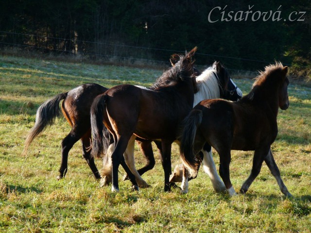 Nový člen stáda, dvouletý Irský Cob, v obležení