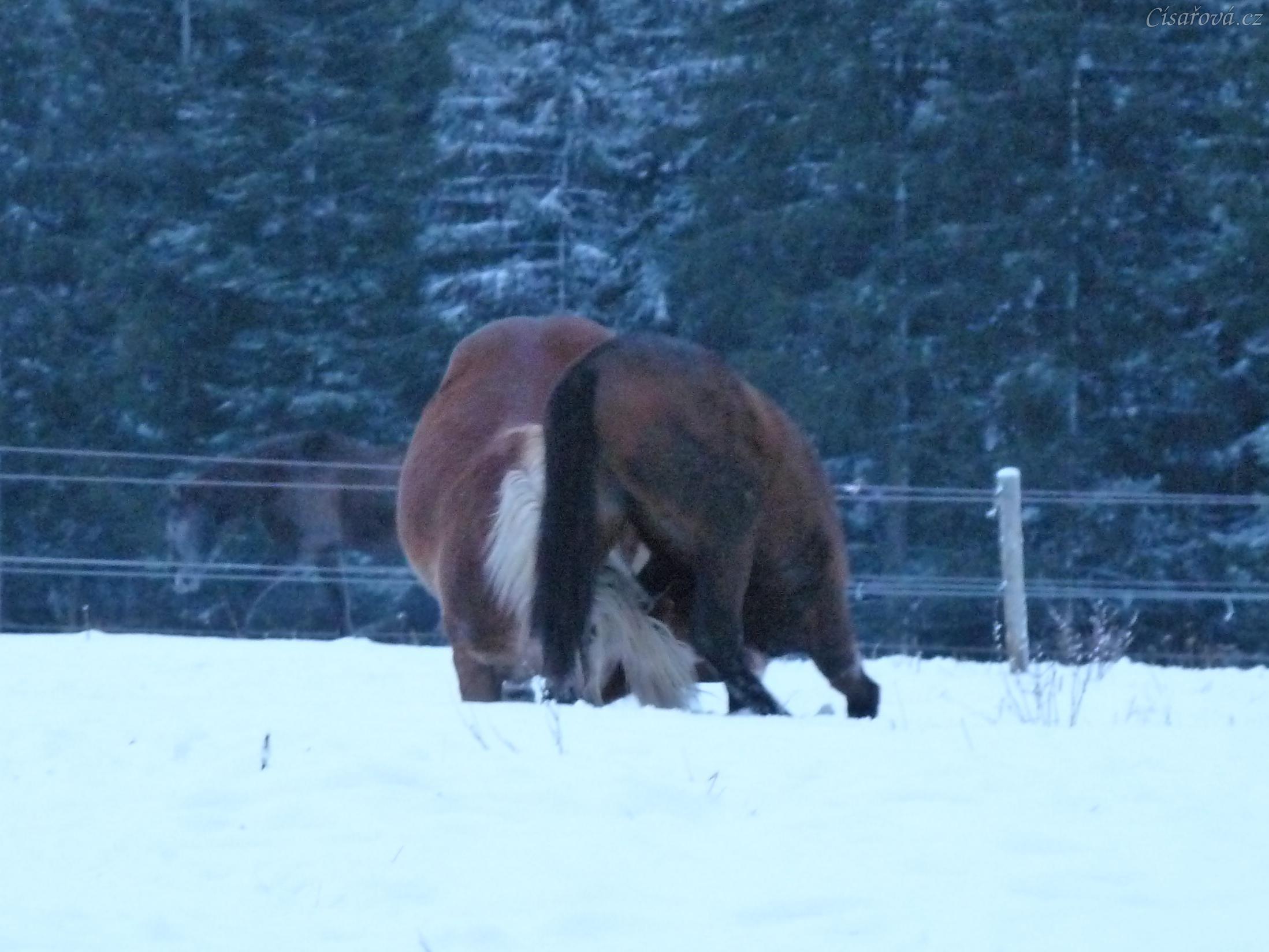 Koně dovádějí při svítání, dvouletý norik Cherokee a roční hannover Ramon. (Kvalita fotek je horší, bylo hodně málo světla, teprve svítalo...)