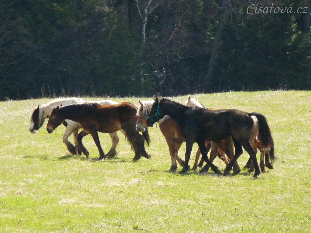 Stádo hřebců na poprvé letos na trávě, samozřejmě bylo veselo:-)