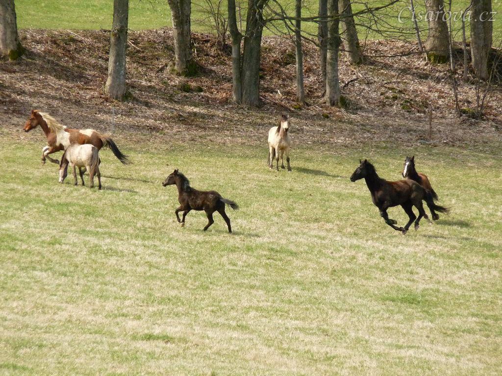 Stádo klisen poprvé letos na trávě, museli se také pořádně proběhnout:-)