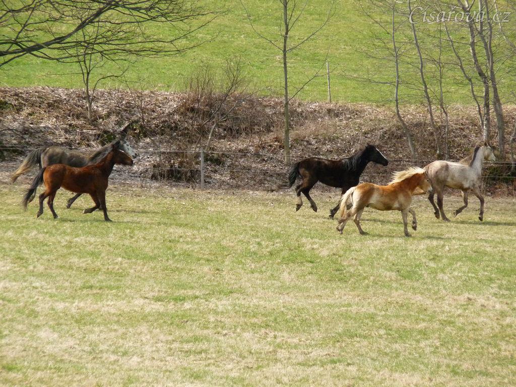 Stádo klisen poprvé letos na trávě, museli se také pořádně proběhnout:-)