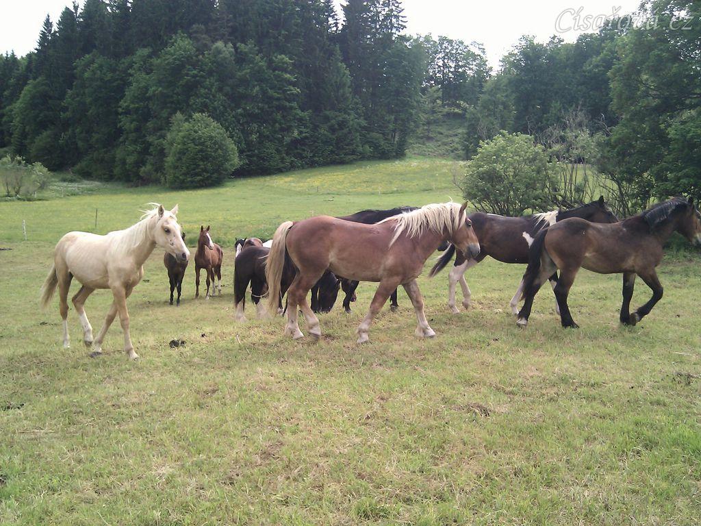 Stádo hřebců dovádí při příchodu nového člena stáda