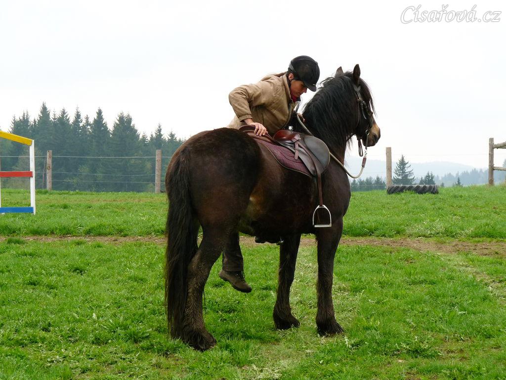 Velice problematický Welsh Cob Limetree Adventure při ježdění na jízdárně - nastupování