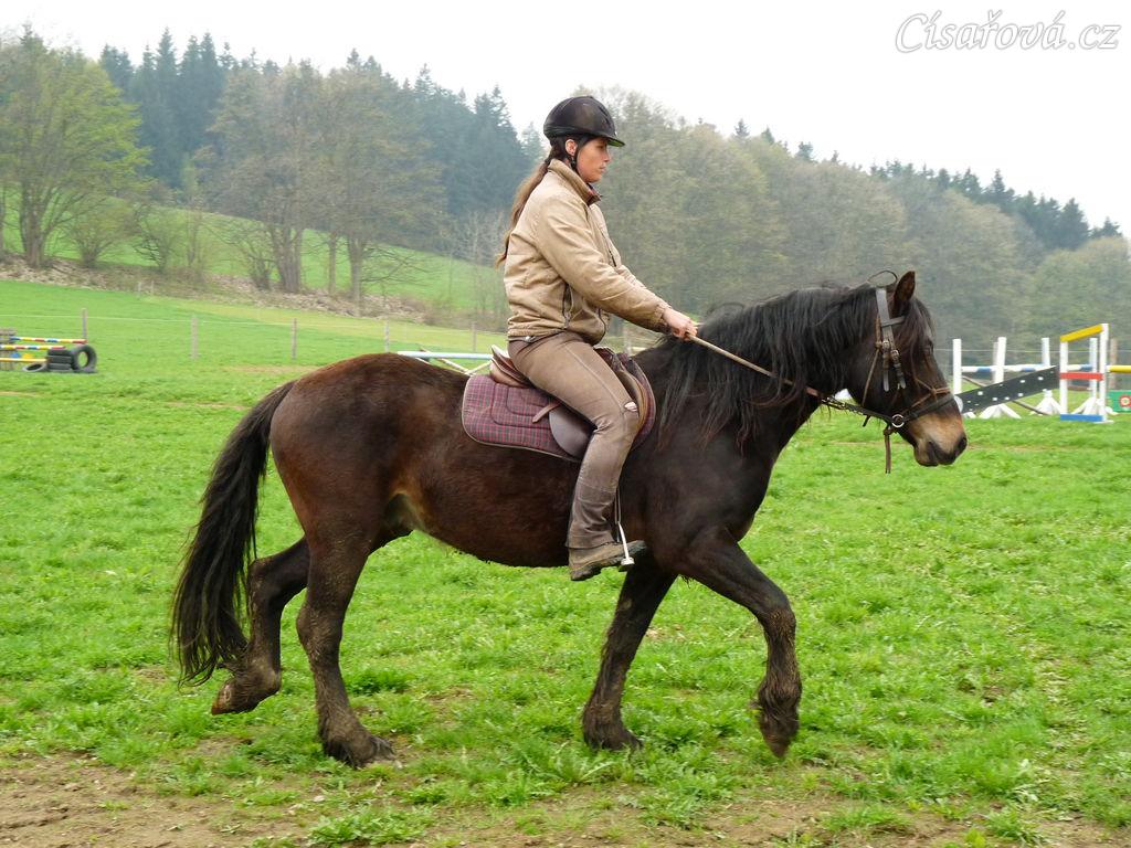 Velice problematický Welsh Cob Limetree Adventure při ježdění na jízdárně - krok