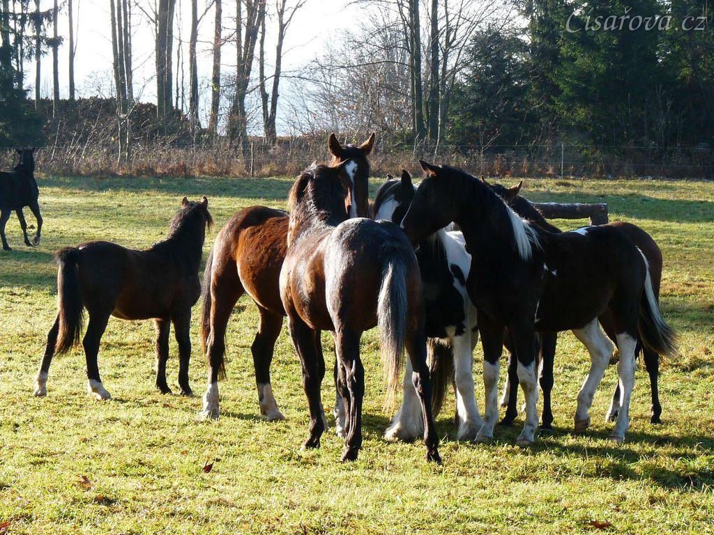 Nový člen stáda, dvouletý Irský Cob, v obležení