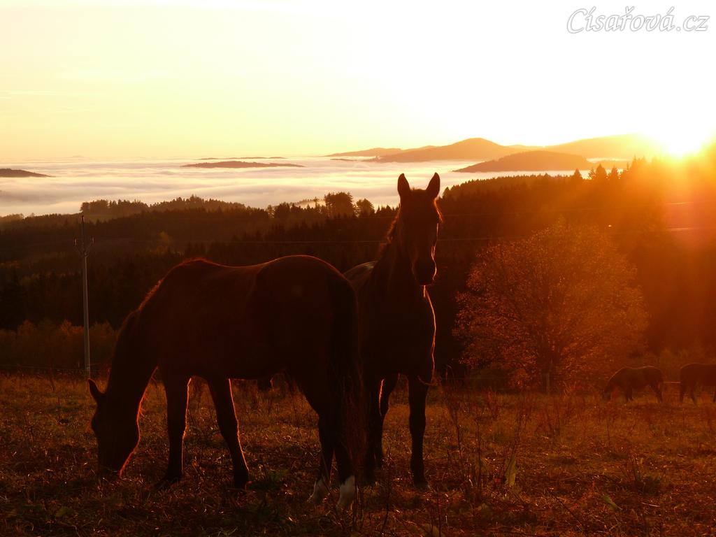 Stádo hřebců, podzimní východ slunce