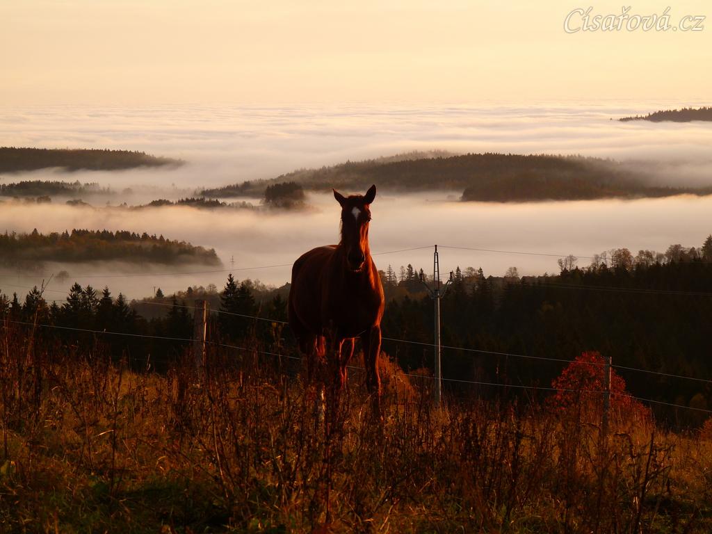 Stádo hřebců, podzimní východ slunce