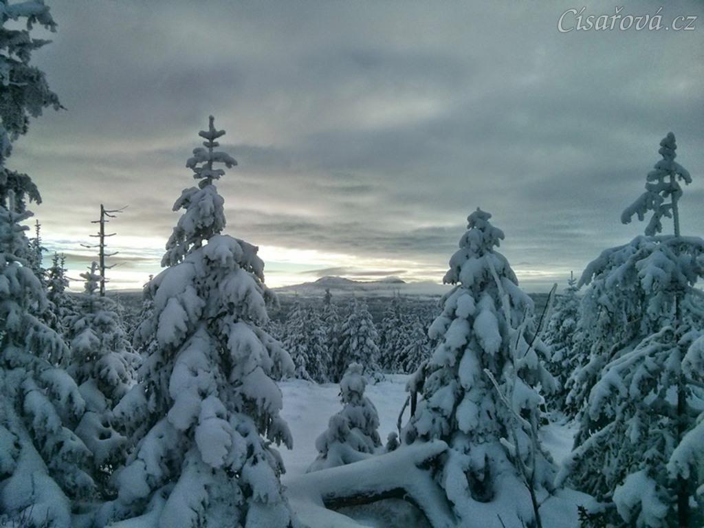 Novoroční vyjížďka, pohled z Oblíku na Ráchel (DE)