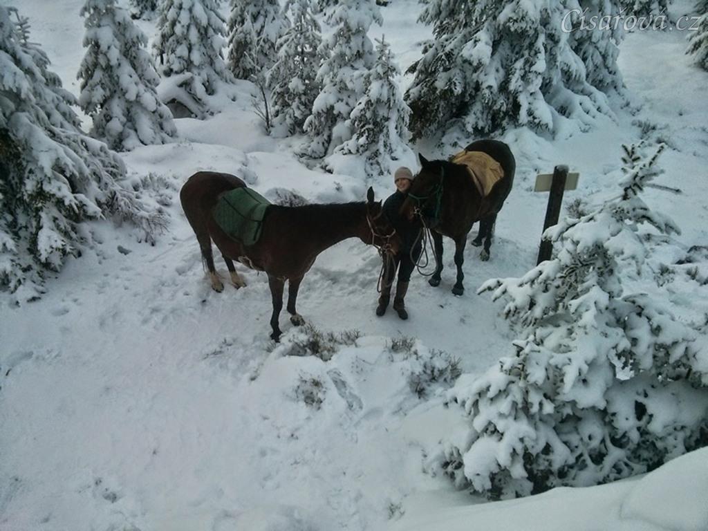 Novoroční vyjížďka, pod vrcholem Oblíku (1225m.n.m.)