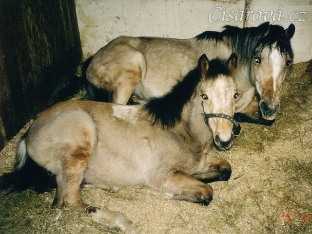 Greisy s Galenem odpočívají ve stáji v Karlštejně, Galen byl asi půl roku starý