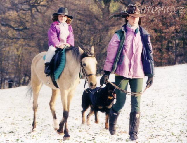 Greisy s Radkou a Adélou v Karlštejně krátce potom, co jsme ji koupili. Radka v té době teprve začínala jezdit.