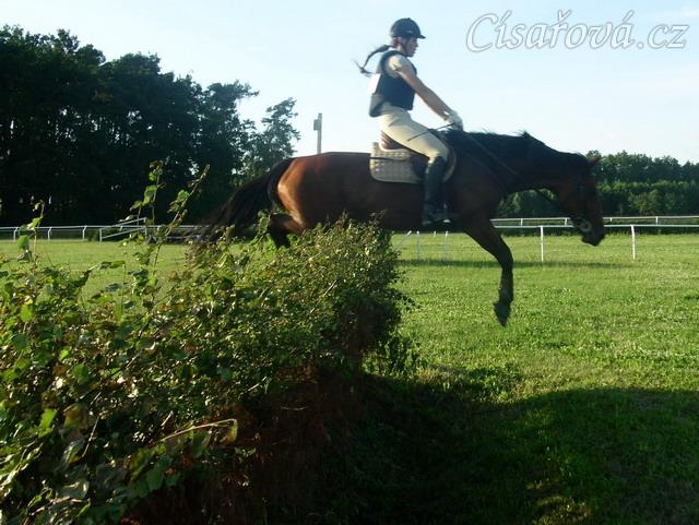 Trénink terénních skoků, skok přes proutěnku s příkopem za ní