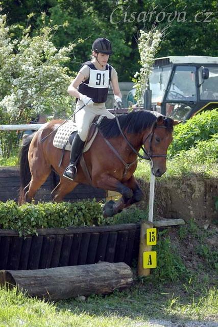 Crossová část, schody: rozfázovaný seskok přes proutěnku.