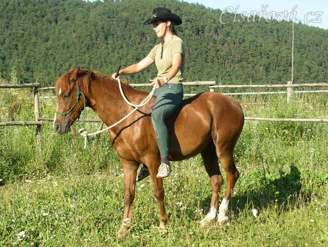 Janek a jedno z jeho prvních vykročení s jezdcem na zádech.