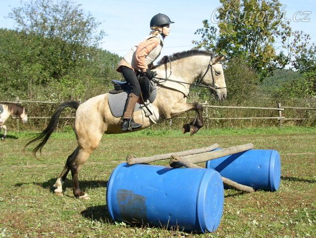 Tereza a Greisy: i větší skoky začíná Tereza skákat bez držení se sedla