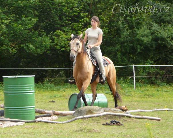 Jízdárna, klus přes kavalety, dá to práci udržet Keisy v klusu:-)