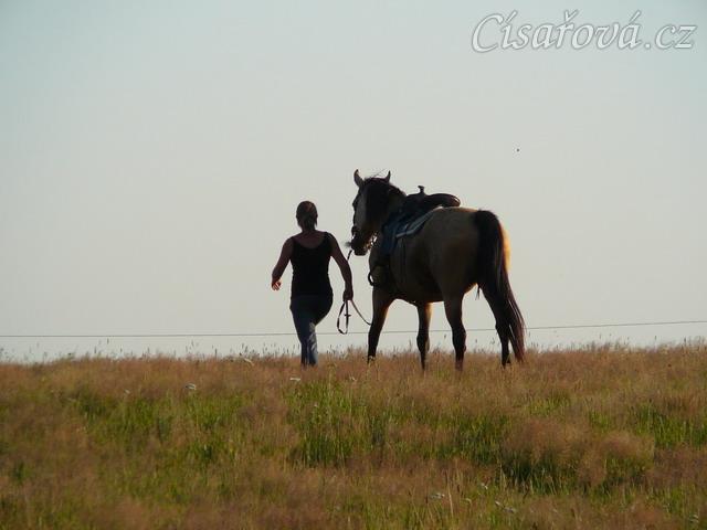Keisy na vyjížďce se svou majitelkou, pěšky domů