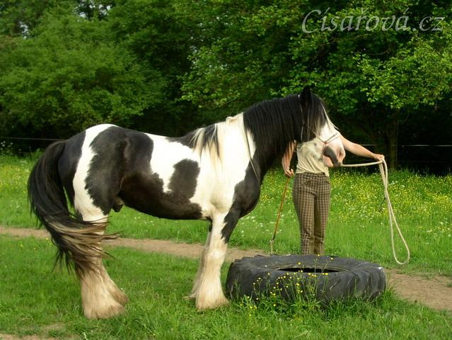 7 her podle Pata Parelli - Bas se poprvé učí stoupnout do pneumatiky