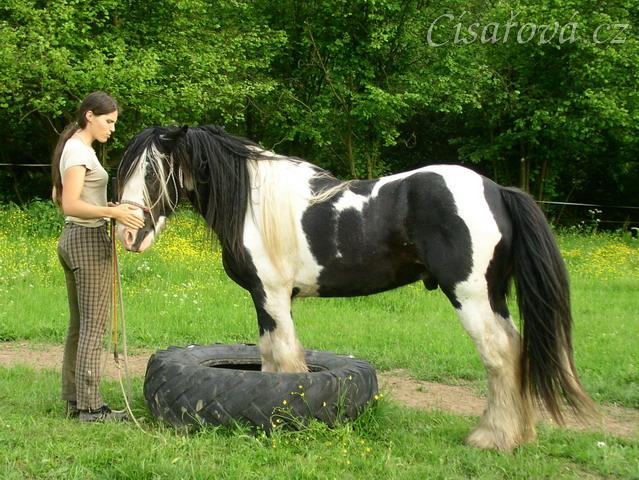 7 her podle Pata Parelli - Bas se poprvé stojí předními v pneumatice